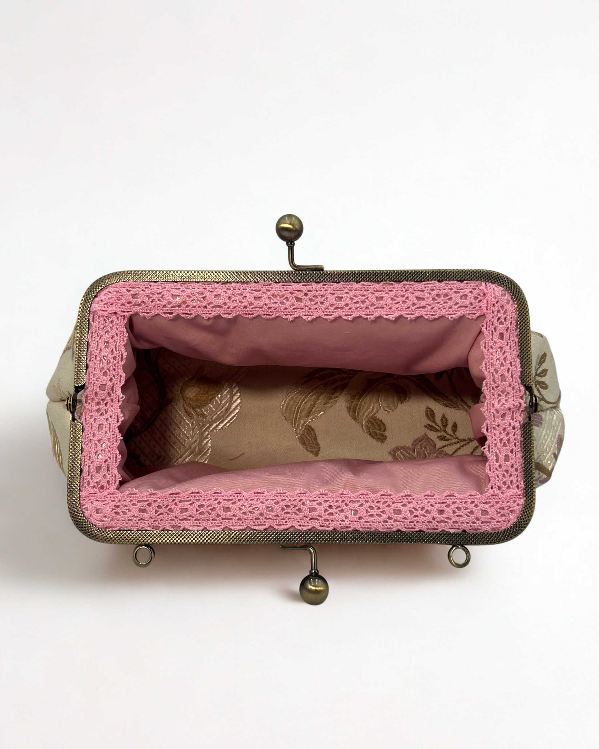 Realizzate con tessuti di recupero selezionati, ogni mini bag unisce qualità e sostenibilità. Esterno in tessuti pregiati o velluto, interno foderato in cotone o raso. I manici, in legno, bambù o metallo, completano un accessorio unico e artigianale.