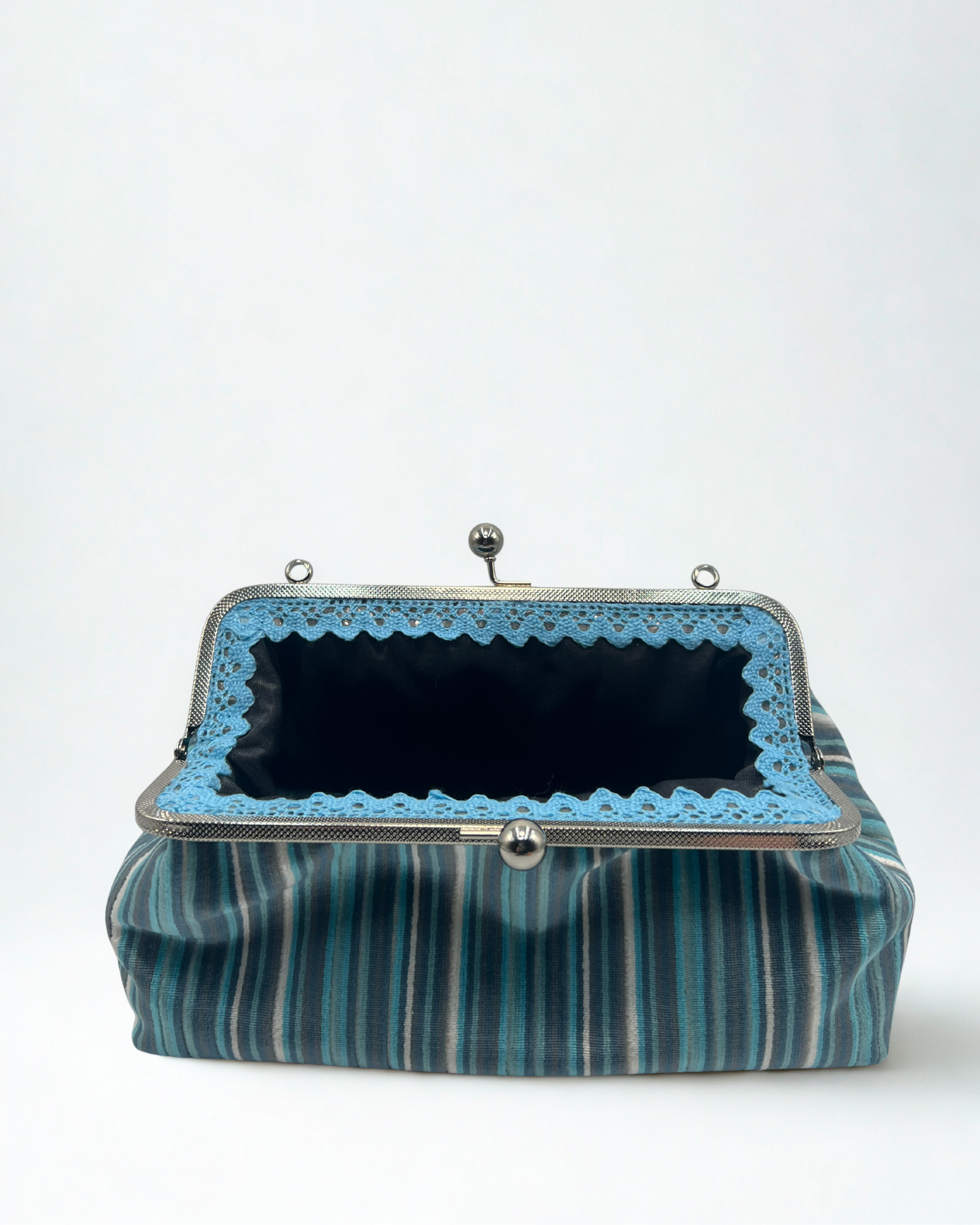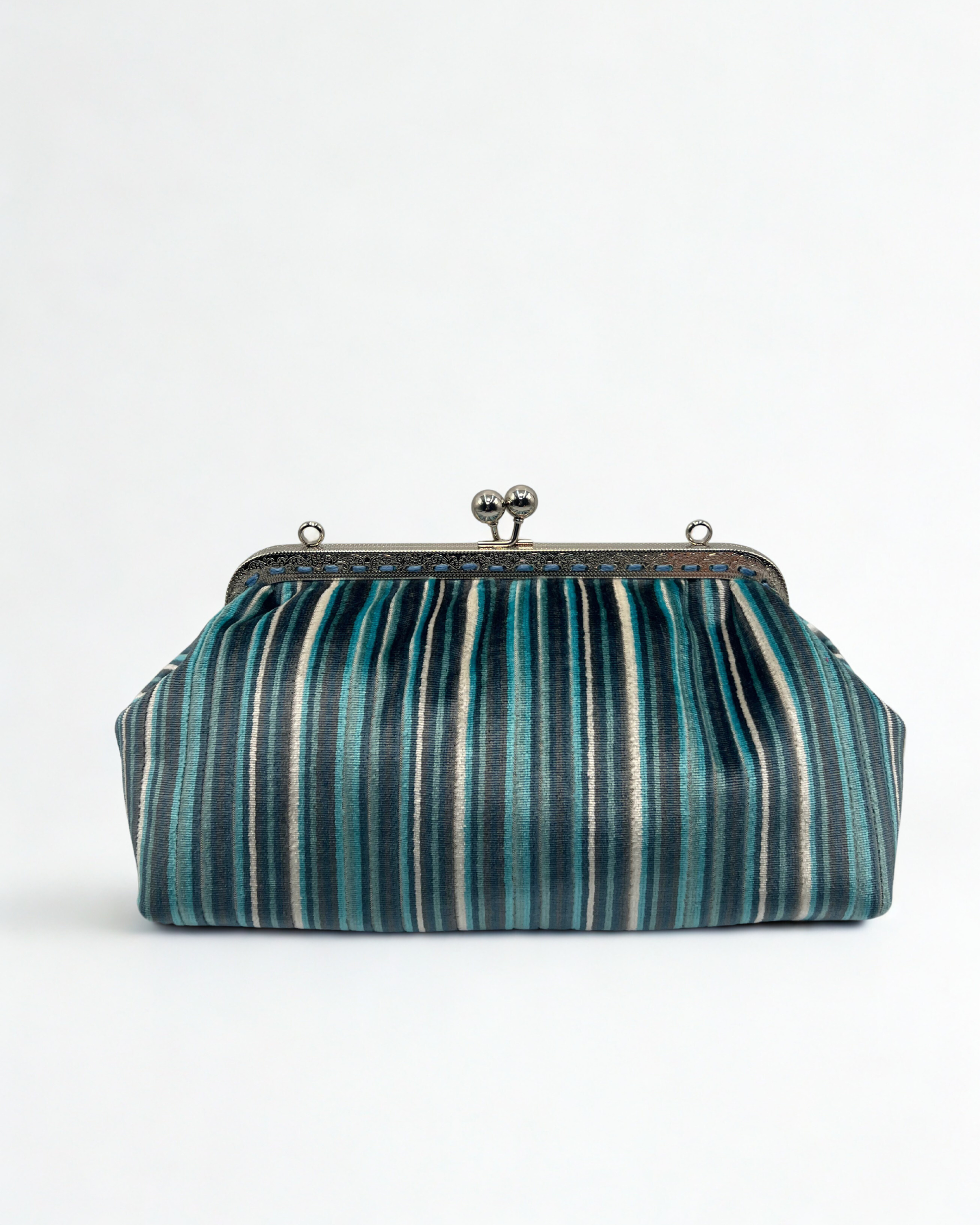 Realizzate con tessuti di recupero selezionati, ogni mini bag unisce qualità e sostenibilità. Esterno in tessuti pregiati o velluto, interno foderato in cotone o raso. I manici, in legno, bambù o metallo, completano un accessorio unico e artigianale.