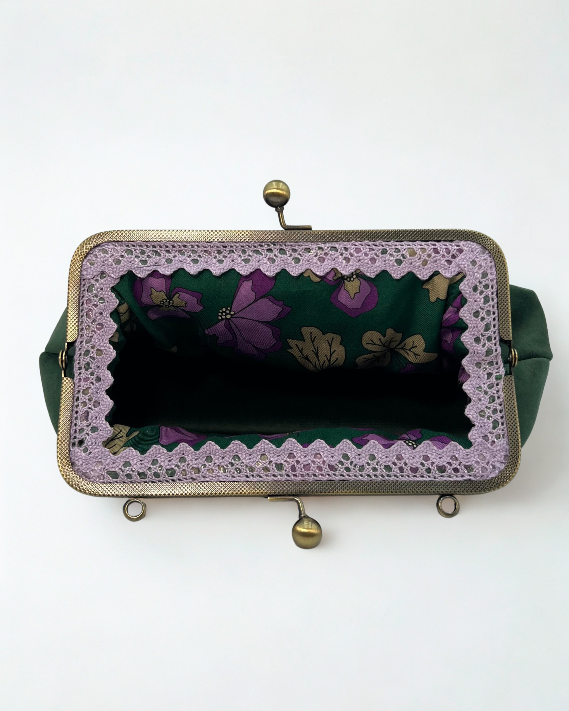 Realizzate con tessuti di recupero selezionati, ogni mini bag unisce qualità e sostenibilità. Esterno in tessuti pregiati o velluto, interno foderato in cotone o raso. I manici, in legno, bambù o metallo, completano un accessorio unico e artigianale.