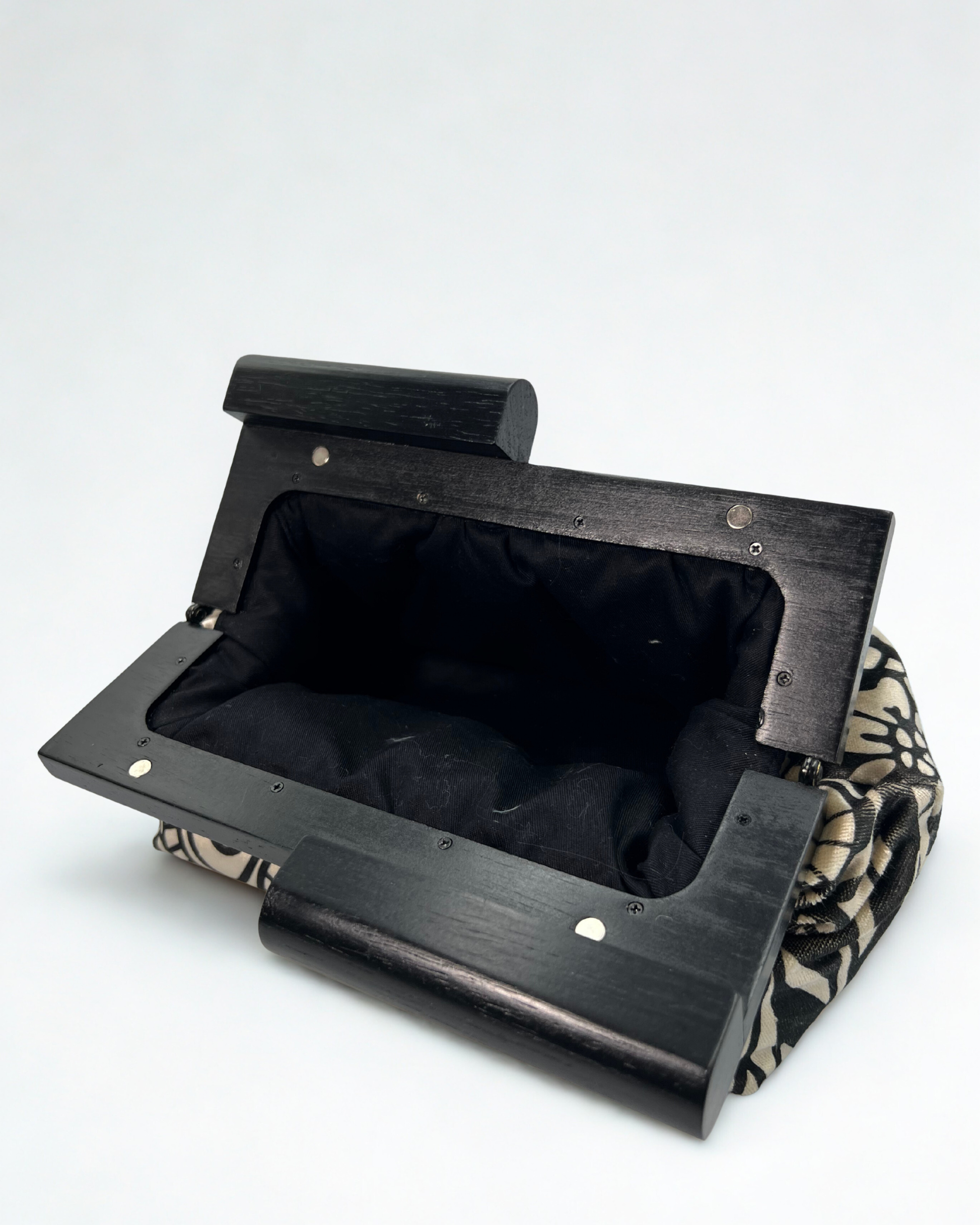 L'interno di ogni borsa è rifinito con tessuti resistenti e morbidi al tatto, come misti lino-raso o fodere compatte in tinta unita. La scelta dei colori richiama sempre i dettagli del tessuto esterno, creando armonia e continuità visiva.