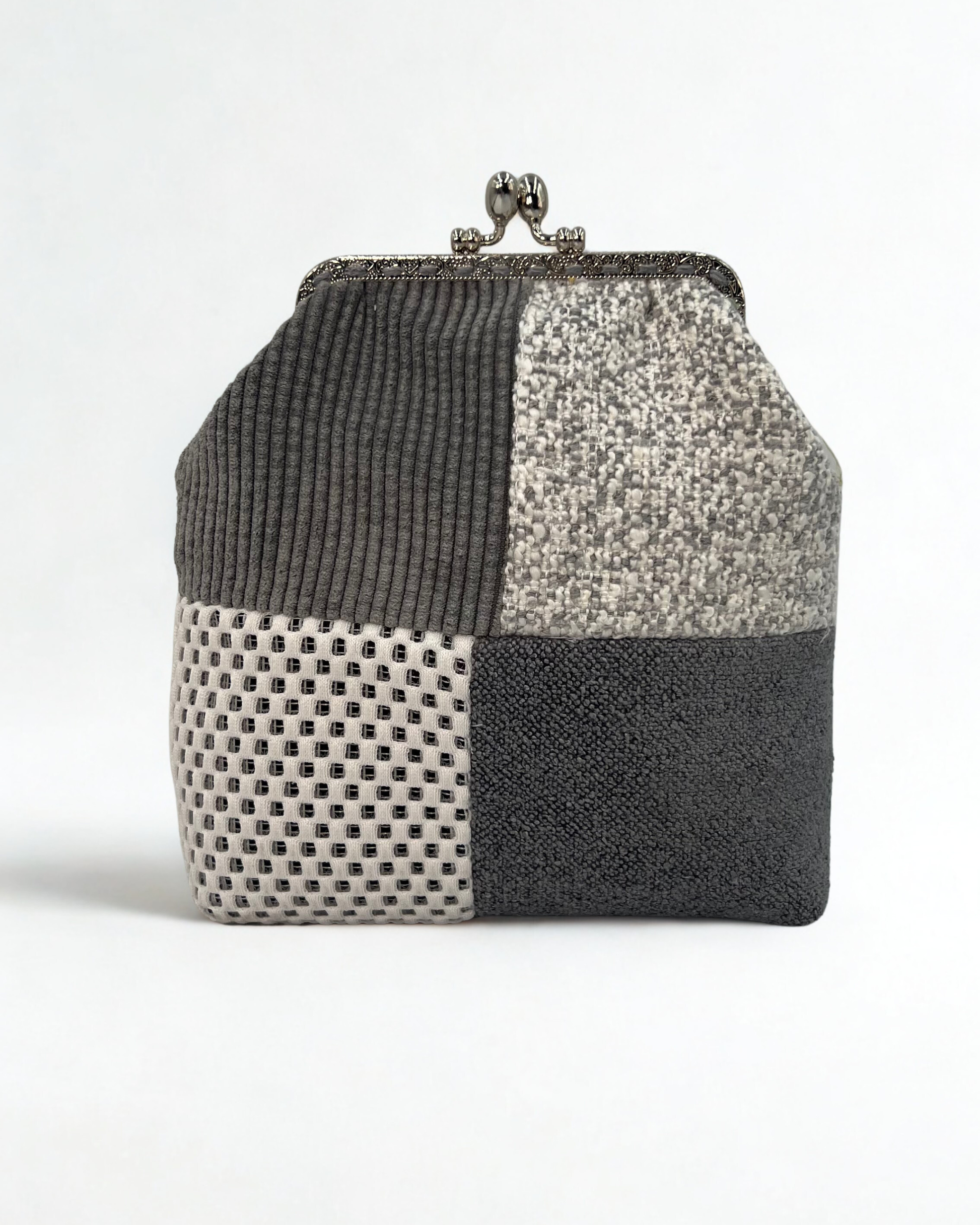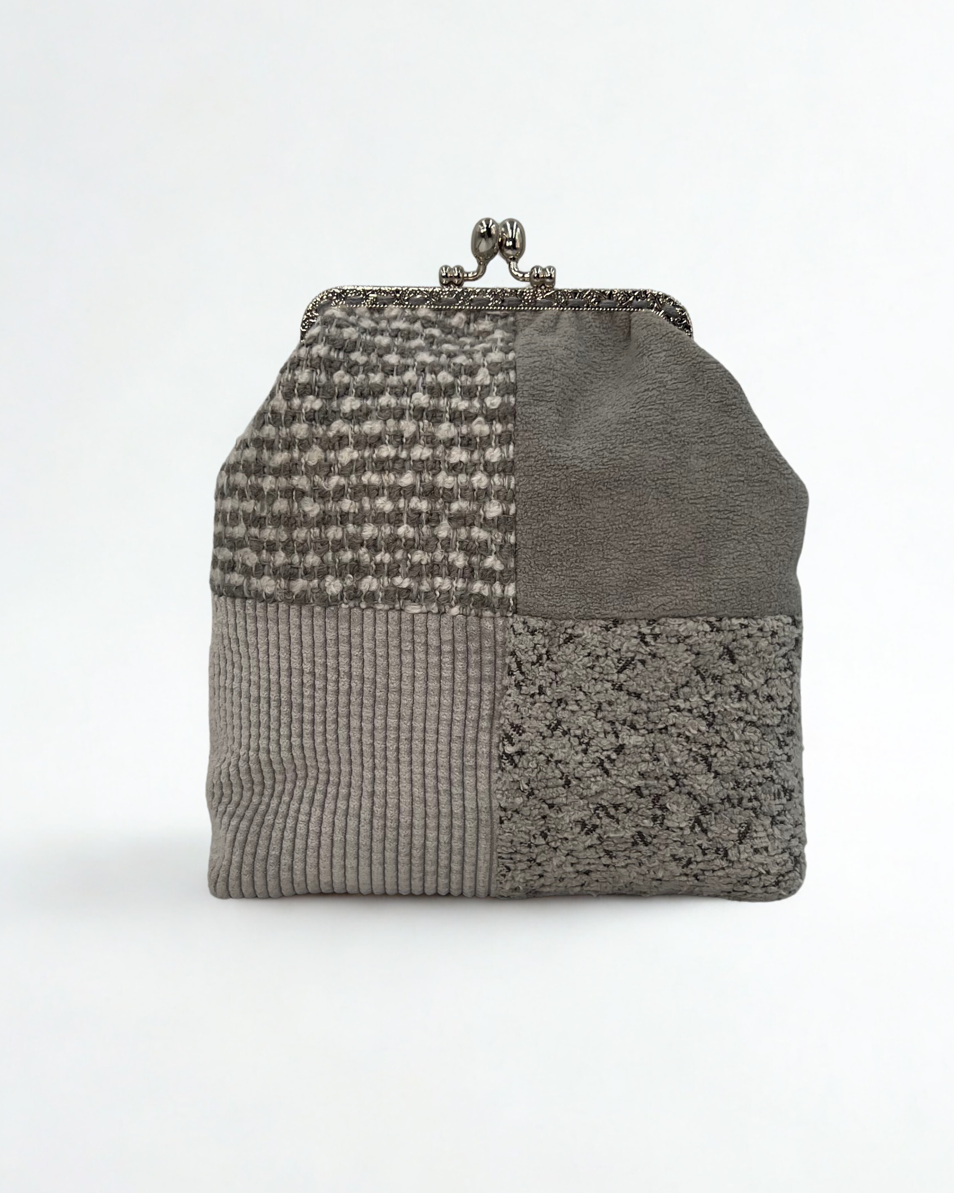 Realizzate con tessuti di recupero selezionati, ogni mini bag unisce qualità e sostenibilità. Esterno in tessuti pregiati o velluto, interno foderato in cotone o raso. I manici, in legno, bambù o metallo, completano un accessorio unico e artigianale.
