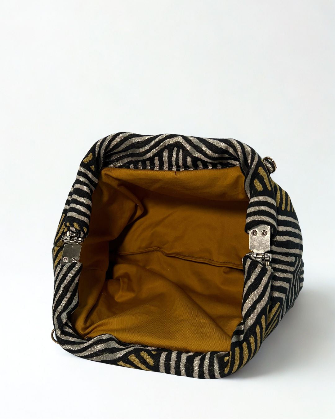 Realizzate con tessuti di recupero selezionati, ogni mini bag unisce qualità e sostenibilità. Esterno in tessuti pregiati o velluto, interno foderato in cotone o raso. I manici, in legno, bambù o metallo, completano un accessorio unico e artigianale.