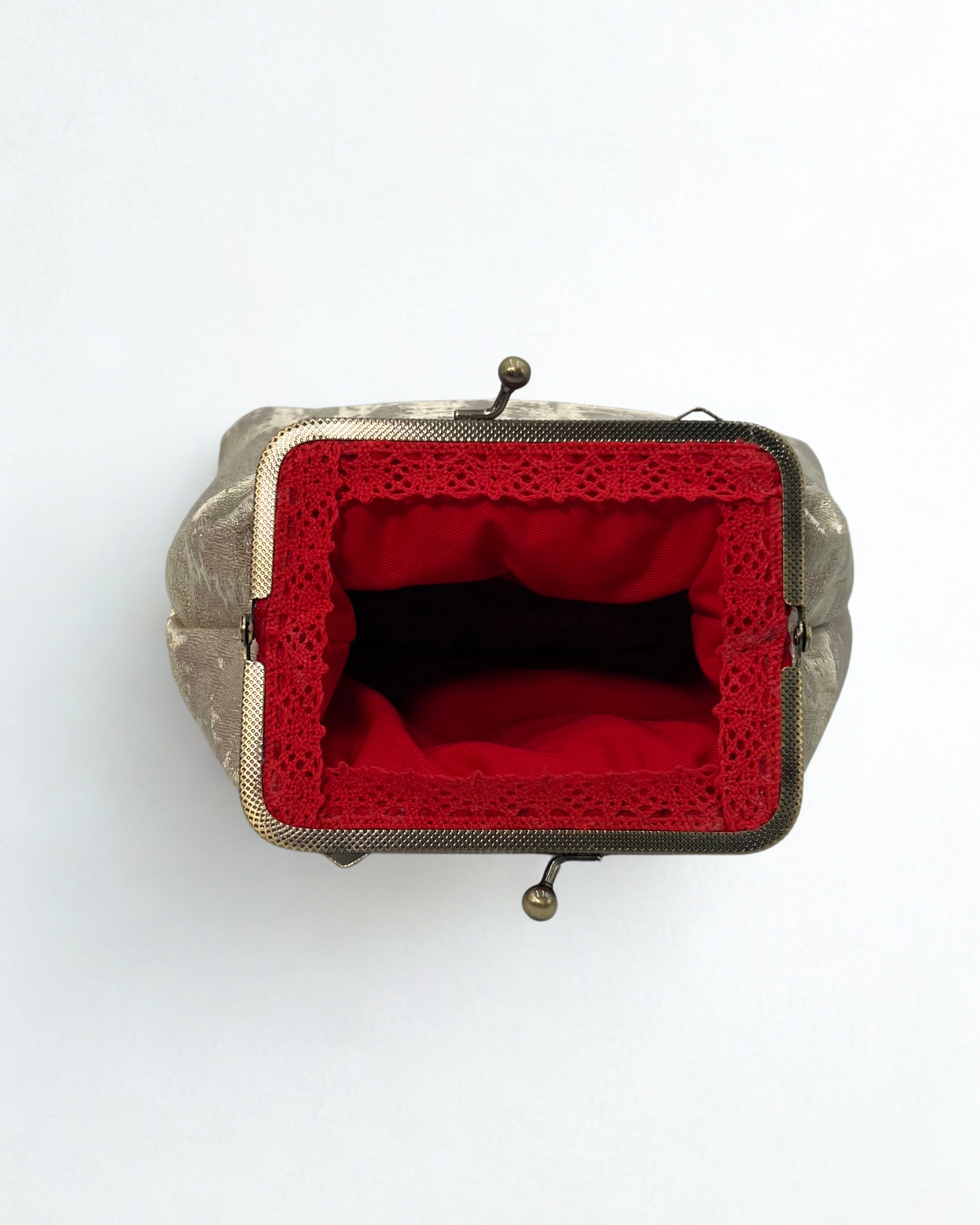 Realizzate con tessuti di recupero selezionati, ogni mini bag unisce qualità e sostenibilità. Esterno in tessuti pregiati o velluto, interno foderato in cotone o raso. I manici, in legno, bambù o metallo, completano un accessorio unico e artigianale.