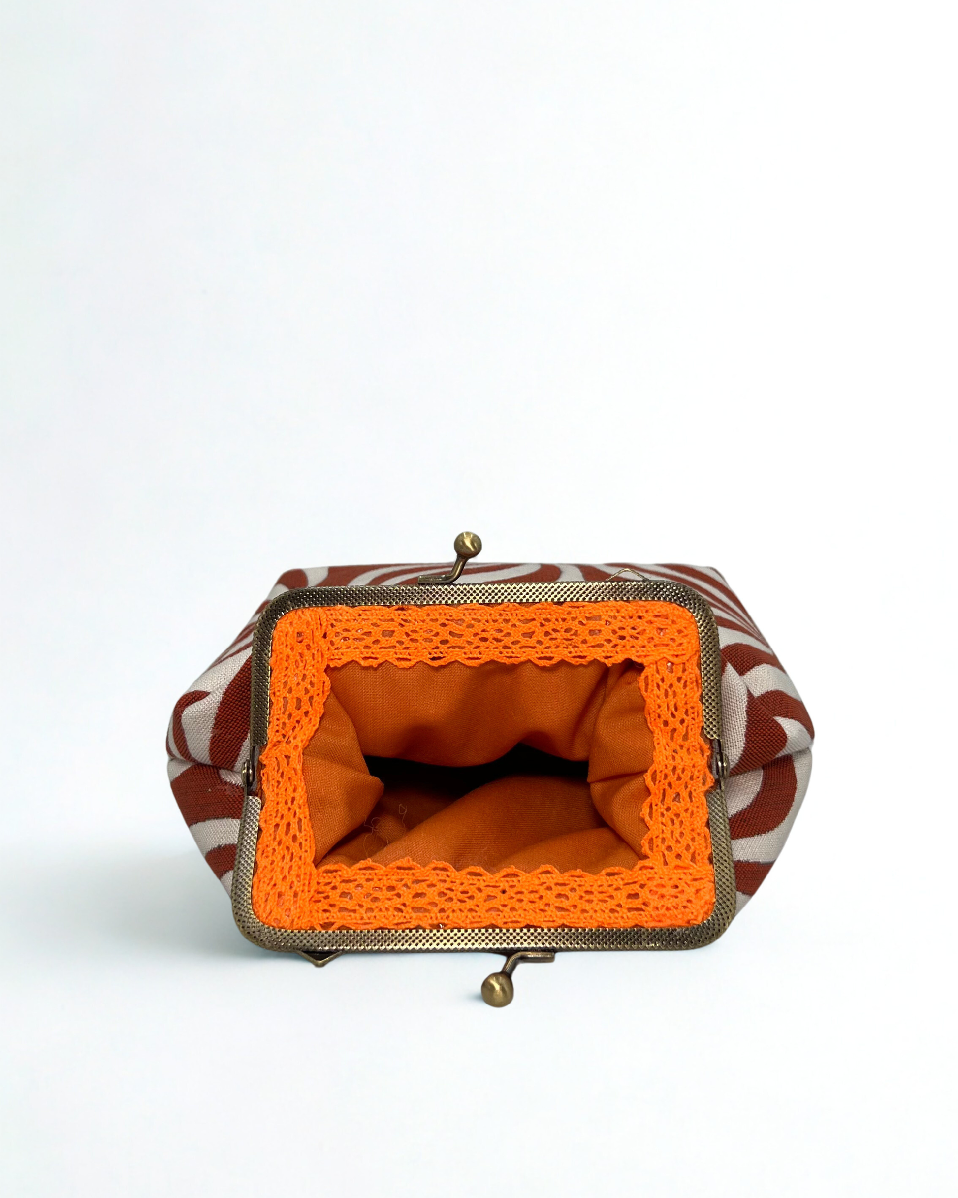 Realizzate con tessuti di recupero selezionati, ogni mini bag unisce qualità e sostenibilità. Esterno in tessuti pregiati o velluto, interno foderato in cotone o raso. I manici, in legno, bambù o metallo, completano un accessorio unico e artigianale.