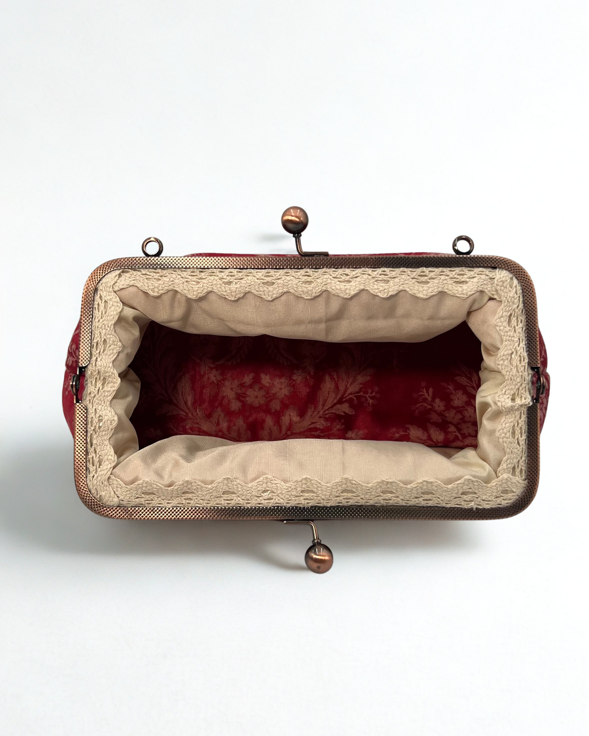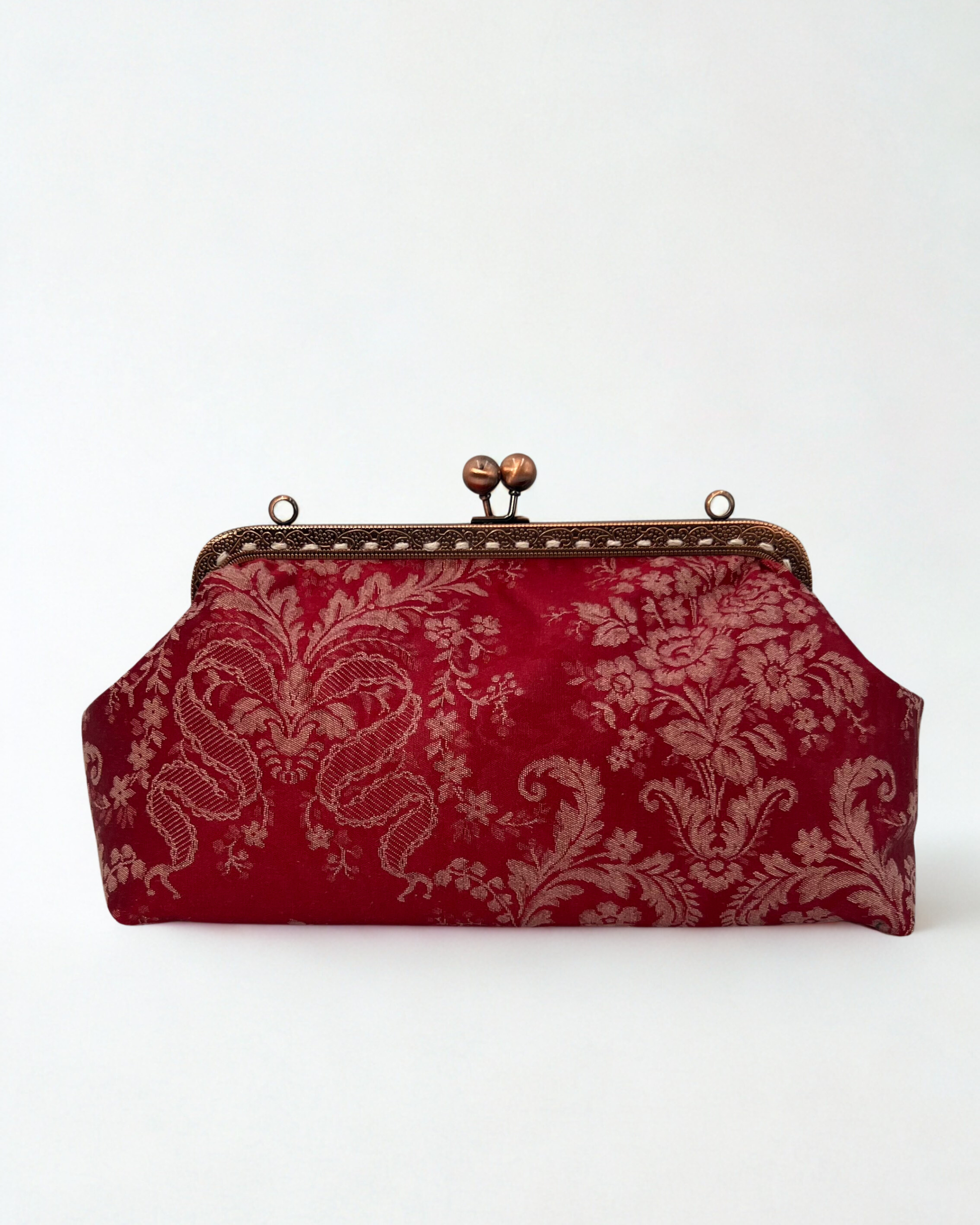 Realizzate con tessuti di recupero selezionati, ogni mini bag unisce qualità e sostenibilità. Esterno in tessuti pregiati o velluto, interno foderato in cotone o raso. I manici, in legno, bambù o metallo, completano un accessorio unico e artigianale.