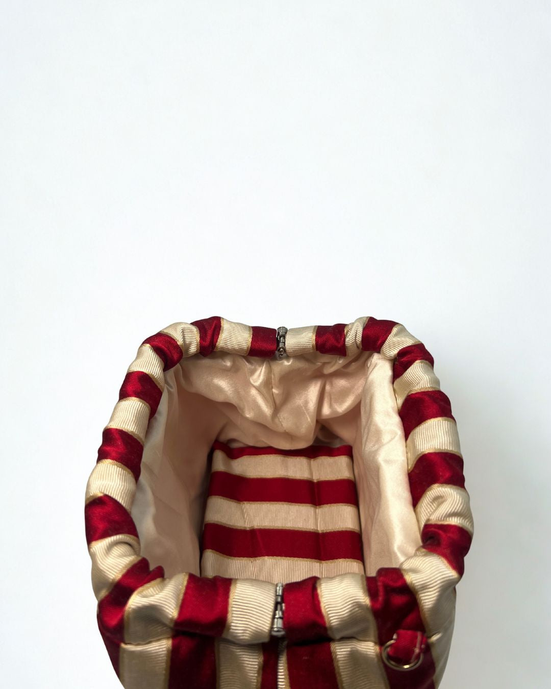 Realizzate con tessuti di recupero selezionati, ogni mini bag unisce qualità e sostenibilità. Esterno in tessuti pregiati o velluto, interno foderato in cotone o raso. I manici, in legno, bambù o metallo, completano un accessorio unico e artigianale.